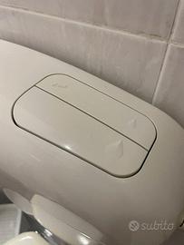 Cassetta di scarico WCbianca con doppio pulsanteecologico. Soluzione pratica per impianti a parete, con sistema di scarico intelligente per risparmiare acqua. Caratteristiche: • Colore: Bianco brillante anti-invecchiamento • Doppia pulsantiera: scarico ridotto e scarico completo - ecologico ed economico • Capacità: 8-9 litri (regolabile) • Materiale: ABS di qualità con trattamento anti-invecchiamento UV • Allacciamento idrico: Destro, sinistro e posteriore (flessibilità di installazione) • Funzionamento silenzioso (< 12 dB) • Rubinetto di chiusura acqua incluso (cromato) • Sistema galleggiante affidabile Misure: • Larghezza: 42 cm • Profondità: 12 cm • Altezza: 44 cm Installazione: Esterna a parete Incluso: Kit completo di montaggio - dima, viti, guarnizioni, tubo di risciacquo Stato: Perfettamente funzionante