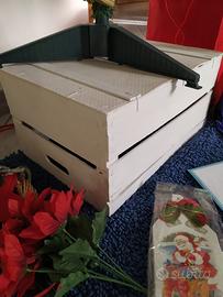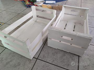Cassette in legno verniciate bianche impilabili multifunzione x portaoggetti e arredo vintage. Adattabili a cucina, salotto, camera, bagno. prezzo Euro 5 l'una.