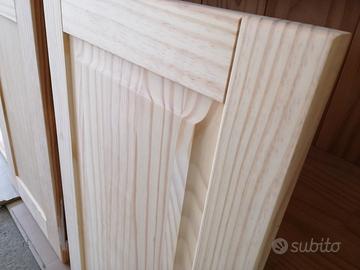sportelli e cassetti bugnati per cucina realizzati in legno massello di Pino selezionato senza nodi, spessore 24mm, disponibili come foto in legno massello naturale da verniciare