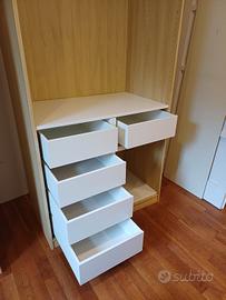 Per pax da 100x58cm vendo 5 cassetti 50x58 con divisorio e portapantaloni estraibile, come da foto.