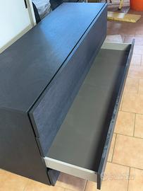 Vendo cassettiera a 4 cassetti con apertura push-pull, finitura legno nero, dimensioni 180 (larghezza), 81 (altezza), 55 (profondità). Ha qualche piccolo segno di utilizzo.