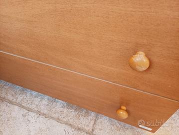 cassettiera mibb, usata per figli molto piccoli (perfetta per riporre vestitini, pannolini etc) e poi come cassettiera per varie cose. 3 cassetti ampi, in buono stato tranne un segno sul top con piccolo scollamento e alcuni pomelli graffiati (vedi foto). trasporto ed eventuale smontaggio a cura dell'acquirente, secondo piano senza ascensore.