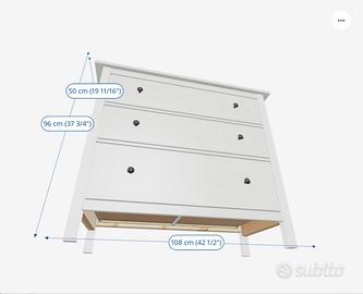 Cassettiera con 3 cassetti, mordente bianco, 108x96 cm