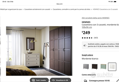 Una cassettiera classica in legno massiccio che combina estetica tradizionale e funzionalità moderna. I cassetti silenziosi e scorrevoli facilitano l'organizzazione dei vestiti. Ritiro a mano in loco Genova Foce.