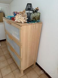 Vendo cassettiera moderna in legno chiaro con 3 ampi cassetti e frontali in pannello satinato. Linea pulita, stile nordico, molto capiente e perfetta per camera, ingresso o casa vacanze.