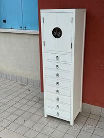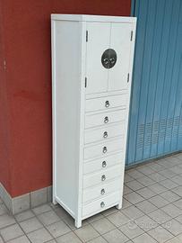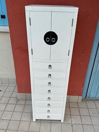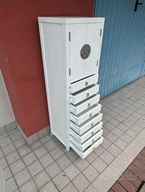 Mobiletto cassettiera con 8 cassetti più piccola credenza 2 ante sopra ,Laccata bianca molto elegante e utile in casa in bagno salotto entrata ecc misure 150 altezza 44 larghezza 38 profondità