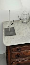Mobile cassettiera fine 800 in noce nazionale con piano in marmo bianco di Carrara , decorata mezze colonnine tornite sui fianchi , cassettiera con serratura ( da restaurare ).