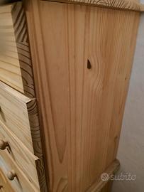 Cassettiera 5 cassetti in legno massello. Mobile solidissimo. Se può interessare, sono disponibili 3 cassettiere identiche con possibilità di sovrapporle. In ottime condizioni. Largo 83 cm alto 70 e profondità 38 cm. Il prezzo è per una cassettiera