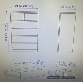 Vendo cassettiera 6 cassetti, allego misure