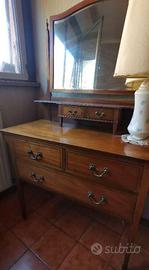 Cassettiera anni 50 con specchio, 3 cassetti + 2 minicassetti, ripiano e specchio,