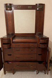 Cassettiera antica stile Art Decò con Marmo Portoro e Specchio Italia Inizio 900. Perfette condizioni, non necessita di restauro. Dimensioni: larghezza 124cm, profondità cassettiera 56 cm, altezza cassettiera 112cm, altezza specchiera 92cm, altezza gambe 15cm, altezza complessiva 204cm. Ritiro a carico dell'acquirente. Pagamento in contanti.