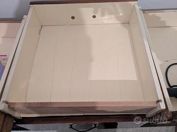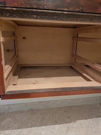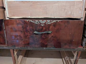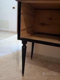 Splendido mobile vintage originale degli anni '50, realizzato in legno con finitura radica lucida e gambe affusolate nere in stile neoclassico. Un vero gioiello di design italiano, ideale sia per ambienti classici che per spazi moderni con un’anima vintage.