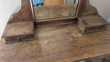 cassettiera antica in discrete condizioni con specchiera. Qualche segno sul piano d'appoggio che forse merita un trattamento rigenerante.