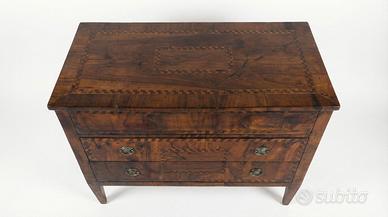 Cassettiera antica in noce con intarsi - comò classico stile fine ‘700 / primo ‘800