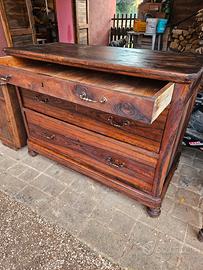 Cassettiera antica con 3 cassetti in noce nazionale completamente restaurata.