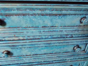 cassettiera quattro cassetti colore verde acqua sfumata bluette. larga 76 alta 78 cm