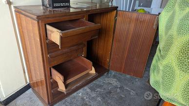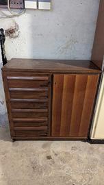 Cassettiera anni 60 in noce massello con vano per oggetti grandi con piano di vetro come in foto.