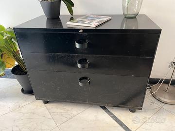 Cassettiera /archivio in in legno e metallo laccato nero lucido linea TECNO - modello GRAPHIS, originale degli anni 70, disegnata da Osvaldo Borsani e Eugenio Gerli.