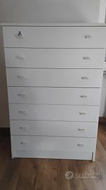 Cassettiera bianca con 7 cassetti capienti, robusta in buono stato solo da rinfrescare. Misure Altezza 112 cm, Lunghezza 75 cm, profondità 45 cm.