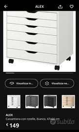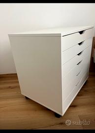 Cassettiera modello Alex di Ikea. Colore bianco. 67*66cm. Con rotelle. Adatta per l’ufficio. Montata e Mai utilizzata