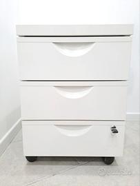 Vendo cassettiera bianca in metallo per studio o casa, con rotelle e chiave per un cassetto di sicurezza. Modello tipo Ikea Galant Trotten. Misure 50x41 cm in pianta; altezza 57 cm.