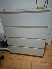 cassettiera bianca opaca 4 cassetti lunga 80 prof.49 alta 100 ritiro a domicilio