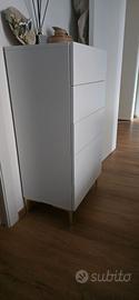 Vendesi cassettiera modello Judith - Deghi colore bianco opaco con 5 cassetti soft close e piedini in metallo dorati. Mobile mai utilizzato né montato in confezione ancora integra, acquistato per errore. Dimensioni 60x115x42 cm.