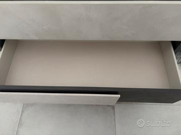 Vendo cassettiera camera da letto color bianco e grigio scuro effetto cemento, bellissima e come nuova.