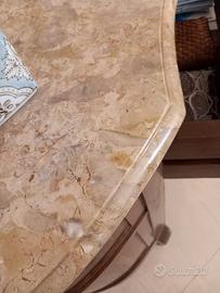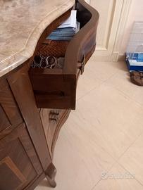 Cassettiera classica a tre cassetti leggermente curvata sul fronte in legno massello con marmo sul piano