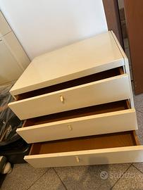Disponibile alla vendita una comoda cassettiera di piccole dimensioni, con qualche segno di usura e un piccolo difetto alla apertura dell ultimo cassetto ma di cui non infuenza il comodo uso.