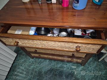 cassettiera funzionale con cassetti belli larghi in vimini e legno perfetta per bagno o camera da letto 4 cassetti no spedizione, ritiro a carico dell acquirente presso Moriondo Torinese misure: 90 x 61 x 43 cm