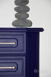 Cassettiera / Comodino Colore: Blu / viola Escluse le cose che ci sono sopra la cassettiera ovviamente, sono solo da arredo DIMENSIONI: - Altezza: 72 cm - Larghezza: 54 cm - Profonditá: 30 cm Contattatemi per consegna