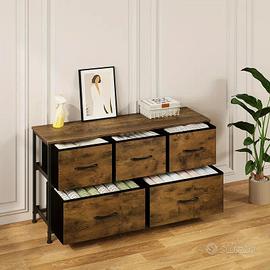 1 pz Cassettiera con 5 Cassetti in Tessuto, Mobile TV da Cucina, per Soggiorno Camera da Letto Corridoio, Realizzato in Telaio Metallico Materiale a Base di Legno, Aspetto Vintage.