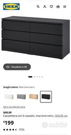 Cassettiera con 6 cassetti IKEA MALM Dimensioni: 160 cm x 48 cm x h 72 cm Condizioni buone con alcune sbeccature come da foto.