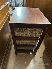 Vendo cassettiera bombata con 3 ceste di vimini. Struttura in legno. Ritiro a Teriasca, Sori. Prezzo trattabile