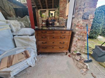 Cassettiera in legno con piano in marmo nero. 4 cassetti in legno. dimensioni: 120×52×104h