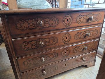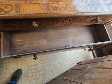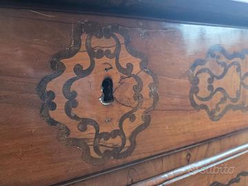 CASSETTIERA CON RIBALTA INIZI '800 IN NOCE INTARSI