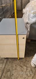 cassettiera da ufficio con rotelle misure in foto color grigio e beige ,legno e metallo