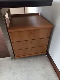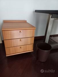 Cassettiera per ufficio con rotelle a tre cassetti. Misure: cm. 45 x 48. Altezza cm. 50/53