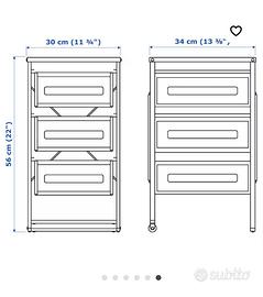 Cassettiera Ikea Lennart, colore bianco, usata ma intatta. Colore bianco. Misure nella seconda foto. Da venire a prendere!