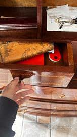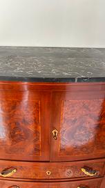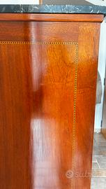 Cassettiera in noce con secretaire con chiave funzionante, con sopra lastra in marmo, in ottime condizioni; pezzo d’epoca. Spedizione a carico dell’acquirente.