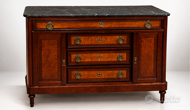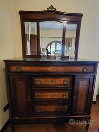 Mobile in legno massiccio (mogano) in ottime condizioni con maniglie e fregi in ottone originali dell’epoca, intatti.