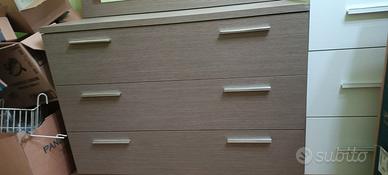 Cassettiera 3 cassetti con maniglie argentate con specchio color grigio tortora. Prese nuove ma alla fine mai usate