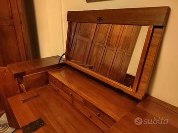 Cassettiera con specchio ribaltabile in legno e cassetti piccoli e grandi usato ma in buono stato. Legno noce arte povera. Smontaggio e trasporto a carico dell'acquirente. Zona Poggibonsi Siena.