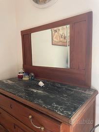 Cassettiera in legno con specchio e piano in marmo Alcuni difetti presenti