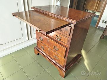SORETTA SU PIEDI INTAGLIATI A SAGOMA . CASSETTI SONO RIVESTITI ,SECONDO TENDENZA D'EPOCA, DI BELLISSIMA CARTA ,TIPO CARTA DA PARATI , A MOTIVI FLOREALI .