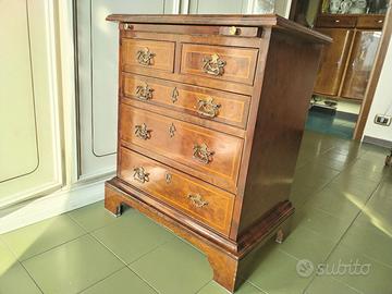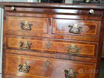 PRESENTA 3 CASSETTI E 2 CASSETTINI + RIPIANO ESTRABILE , POMELLI E MANIGLIE IN BRONZO A PENDAGLIO MOLTO DECORATIVI .