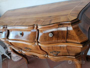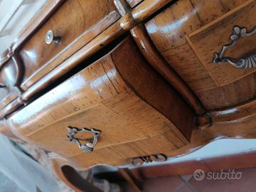Cassettiera consolle barocca trattata a gommalacca, anni 30/40 misure altezza 75 larghezza 90 profondità 35. Spedizione in tutta Italia