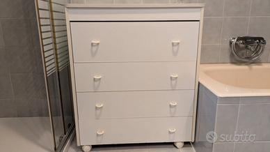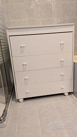Cassttiera 4 cassetti misure 45 x 75x h86, con ruote. Predisposta per vaschetta bagnetto e fasciatoio (non disponibili).