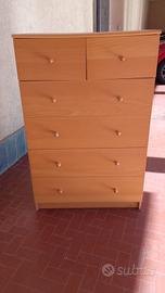 Vendo cassettiera in legno chiaro, con 4 cassetti grandi e 2 più piccoli. Buoni. condizioni. No spedizione